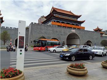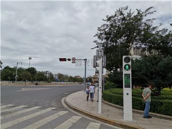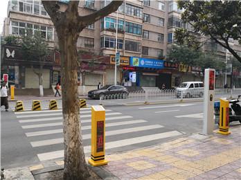 云南玉溪路段式行人过街+语音提示桩安装实例1