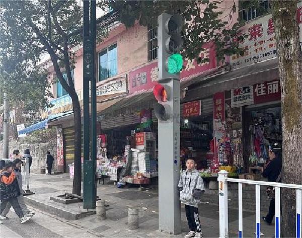鑫光道-云南丽江忠义市场机动灯加人行一体式信号灯安装实例图