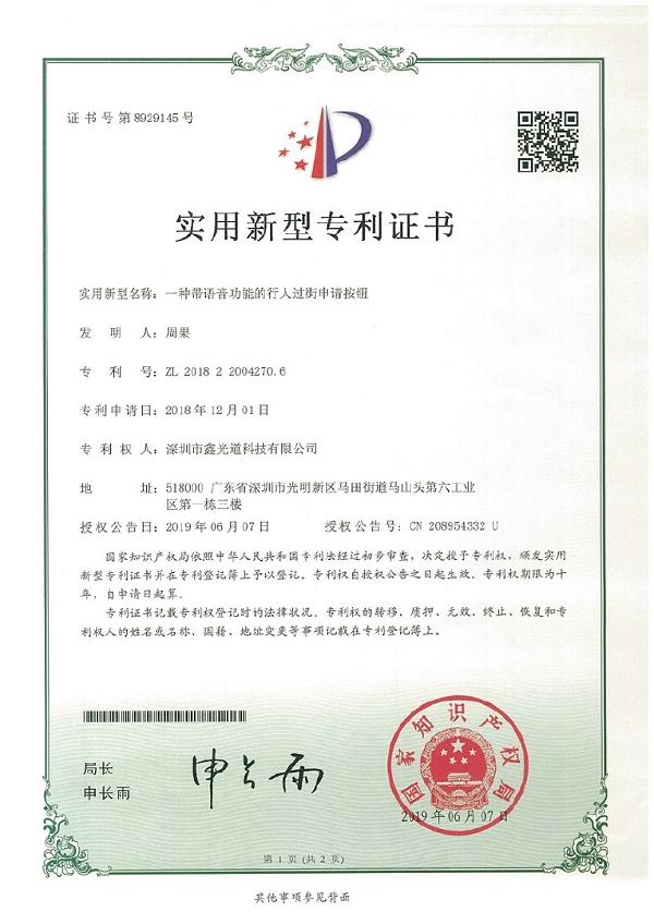 实用新型名称:一种带语音功能的行人过街申请按钮
