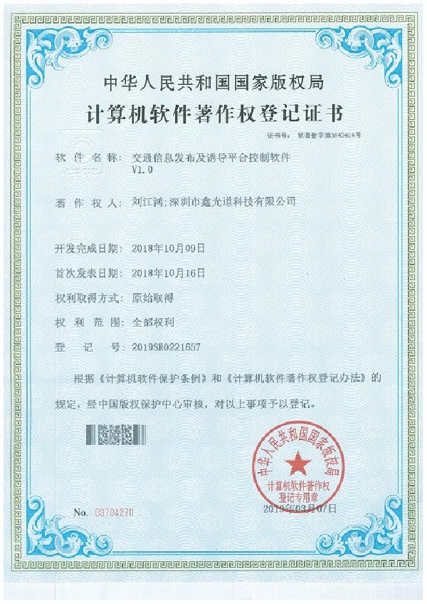 软件名称:交通信息发布及诱导平台控制软件V1.0
