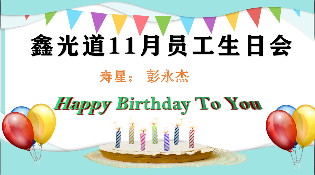 鑫光道5月份员工生日会 五月,春未尽,夏未至。五月,风和日晒,自由自在。 如花五月,我们也迎来了鑫光道每月一次的员工生日会。 2021年5月17日,我们相聚“厨嫂当家”,欢聚一堂,为本月的寿星们庆祝。 精心准备的蛋糕和长寿面,是对寿星们最热情的祝福,愿他们在以后的日子灿烂绽放。 16点30分,“祝你生日快乐...……”熟悉而美妙的旋律响起,大家同唱一首生日歌,寿