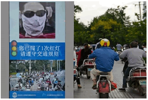 在金源大道与彩云北路交叉口,一块防盗门大小的屏幕上,每当斑马线红灯亮起,上面就会出现一些人脸,屏幕上还有提示:“你已闯红灯,请遵守交通法规。”这是昆明试点的首个“人像识别抓拍行人闯红灯”系统。