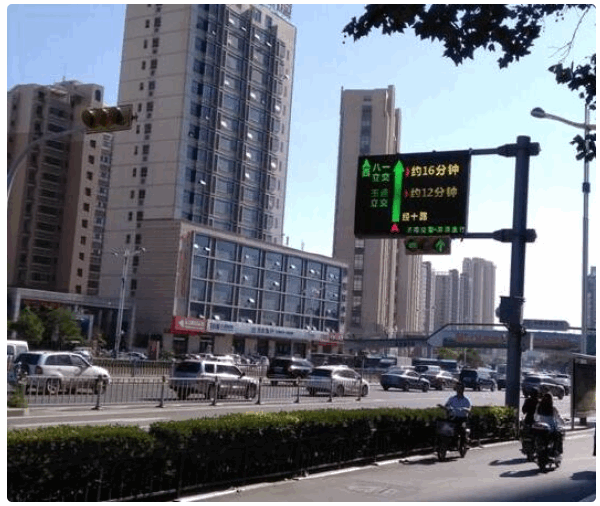 LED交通诱导屏是由普通道路标志和可变信息标志结合组成的多功能信息显示屏,广泛应用于城市道路,是城市交通诱导系统的重要组成部分。LED交通诱导屏不仅可以实时显示前方道路的通行状况,还能显示前往前方路段所需的时间。而这背后,则是数据来源的变化:原有交通诱导屏所显示的信息均来自交管局的数据,如今的信息则结合了出行收集的数据。