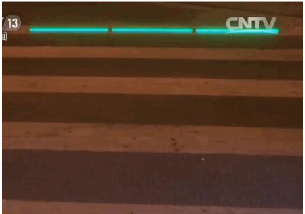 这个地面式的“人行红绿灯”设置在斑马线的两端,三条发光带与道路两旁立柱式的信号灯一致,看手机的“低头族”经过时,眼睛的余光能看到闪烁的红绿灯,将视线从手机屏幕上移开,注意看周围的情况。
