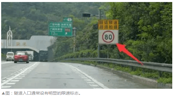 进入隧道前必须适当减速。隧道口通常设有明显的限速标志,以提醒驾驶人在进入隧道前降低车速。隧道内的车道通常会比隧道外的狭窄一些,减速行驶有助于驾驶人准确把握路况。