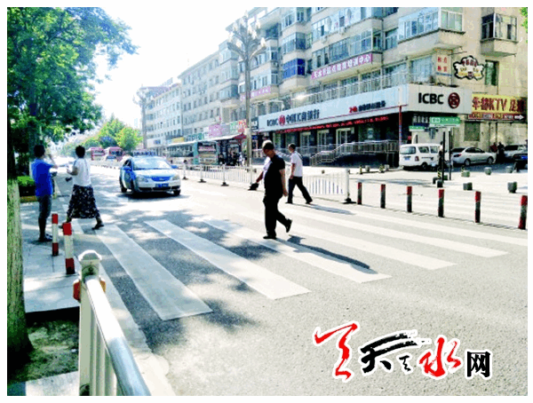 8月15日上午8时许,正值上班高峰期,车辆和行人很多,记者来到秦州区民主路百货大楼附近,和四五位行人站在南面马路的斑马线前准备过马路,从西面方向开来的几辆出租车和私家车看见后,约从10米远的地方就已减速慢行,当行至记者所在斑马线前时,车都停了下来,行人过去后,这几辆车才开走。