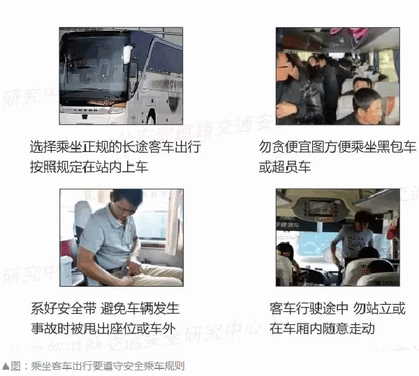 旅游高峰期,外出旅游的人增多,如果选择乘坐大客车出行,要通过正规客运企业选择有运营资质的车辆和驾驶人,不贪图便宜或方便乘坐违法运营的“黑车”,自觉抵制超员旅游客车,乘车时要系好安全带。