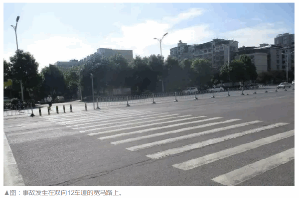 我们先来看一个不久前发生在宽马路斑马线上的事故:2017年8月17日20时,在衡阳南华大学西门附近,一对母子在过马路时被一辆涉嫌超速的小车撞飞十多米,造成儿子离世,母亲重伤。据报道,遇难者刘某刚刚领到大学入学通知书,希望提前感受大学校园气氛,于是在母亲的陪同下参观了校园,然而在回程路上不幸发生事故。事故发生地的斑马线位于双向12车道的宽马路上,且该路口没有设置过街信号灯。另据交警介绍,这一路段限速40km/h,但因路况较好,多数车辆存在超速行为,之前已发生多起交通事故。