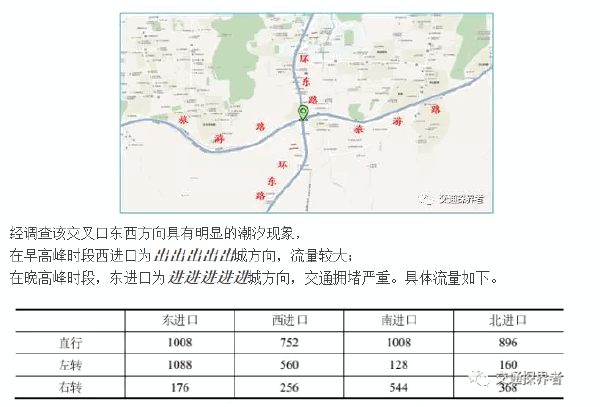 济南市旅游路与二环东路交叉口,南北方向二环东路为环城快速路,东西方向旅游路为济南连接东西的重要道路。该交叉口为两条主要道路的交点,也是东西方向旅游路的交通瓶颈点。