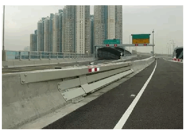 从前香港道路中央分隔带有的使用水泥混凝土,有的使用两波板。后来发现,两种不同材质分隔带护栏的连接并不理想,车辆与两波板护栏发生碰撞后容易出现跑到对面车道的情况,因此现在新建中央分隔带都采用了水泥混凝土设计。