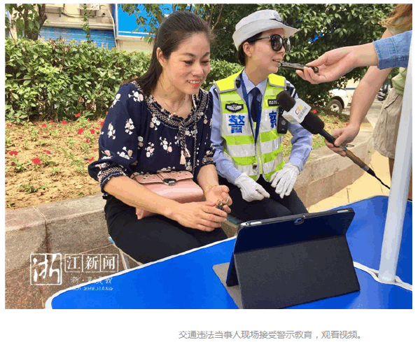 在现场,记者看到,所谓的“现场教育警示点”是可移动的,由一张可折叠的桌子,三张凳子,一把遮阳伞和一部平板电脑组成,电脑里播放的交通违法视频在15分钟左右。“昨天下午正式启用,不到2小时的时间,就有7个人观看了视频,接受现场教育,他们感触颇深。”现场执勤的湖州公安交警支队直属一大队爱山中队民警王予说。