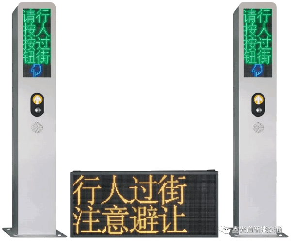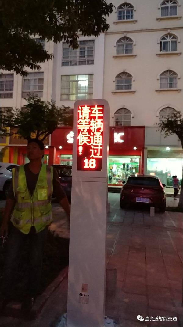 2、系统不仅给过街行人提供提示,还通过一块显示屏给车辆提供提示(提示内容均可通过后台更改)。