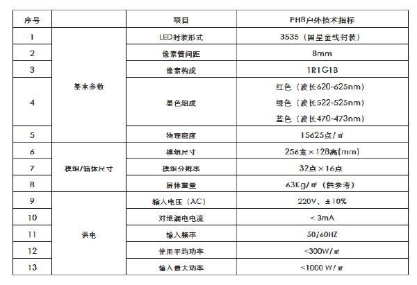 五、显示屏性能参数: