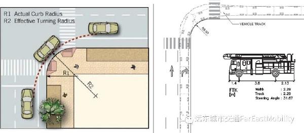 路口转角问题的最大误解来自于汽车实际的转弯(轨迹)半径和路缘石的道路曲线半径不是同一概念。