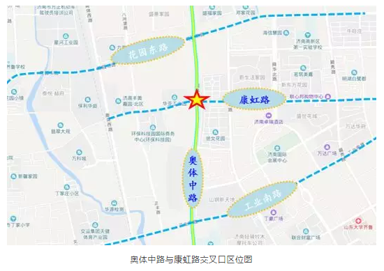 继工业南路与奥体中路实施“左转借道公交专用道”通行可变车道取得良好效果后,济南交警继续深入推广该微设计措施的应用,于奥体中路与康虹路交叉口实施了济南第二条“左转借道公交专用道”可变车道。