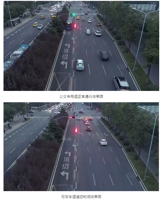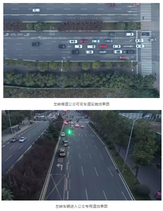 针对以上现状问题,济南交警通过现状的全方位调研,为康虹路北进口“量身打造”1条“左转借道公交专用道”可变车道,充分挖掘路口时空资源,缓解路口高峰期间交通压力。具体措施为: