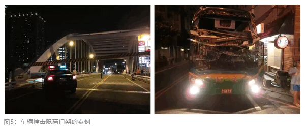 限高门架是最典型的空间路权。图5是台湾的一个案例,一辆旅游大巴撞到了限高门架,这就是侵犯空间路权。在前方预告标志充足的前提下,道路交通主管部门有权要求肇事者赔偿。