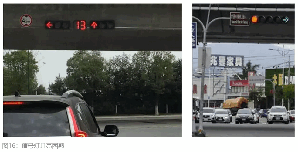 看到图16左图中的信号灯,车辆到底能不能右转?正确的信号灯显示应该是如右图所示。