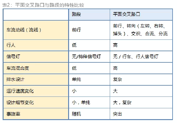 与路段相比,交叉路口的路权属性比较复杂,也更容易发生交通事故,因此,两者的规划、设计、营运、管理、改善思维完全不同,还要特别注意路口、路段的接续部分。交叉路口的外型越畸形、动线(流线)越复杂,其路权属性也越复杂,在畸形交叉路口、大环岛,很多道路使用者会不清楚路权。