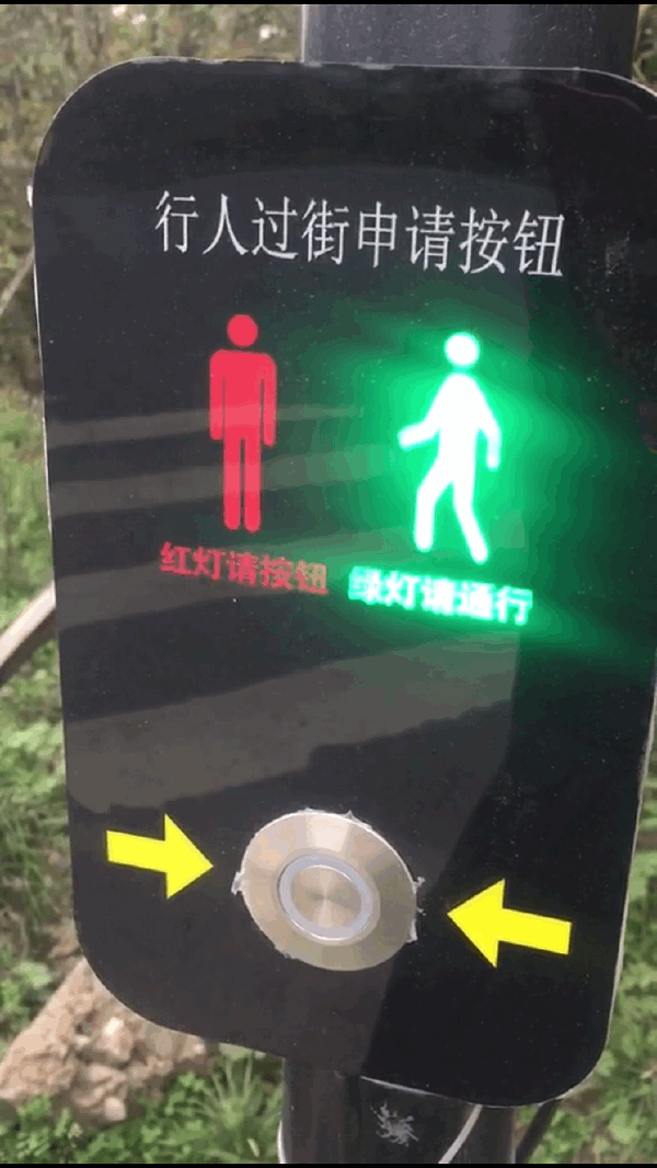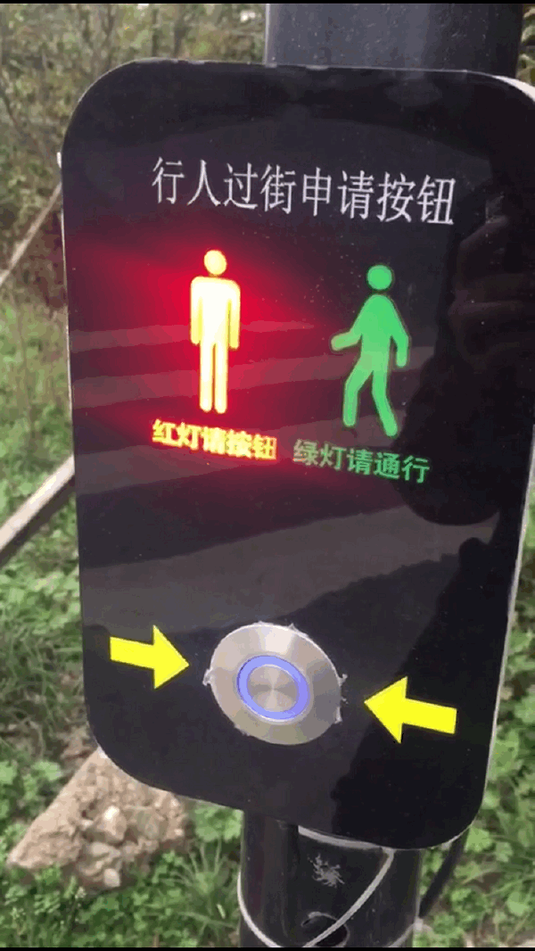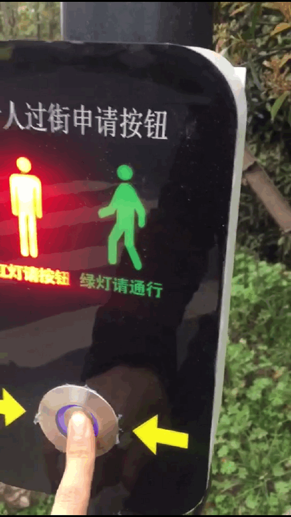 “现在是红灯,过街轻按按钮。” “过街请求已发送,请稍等。”
