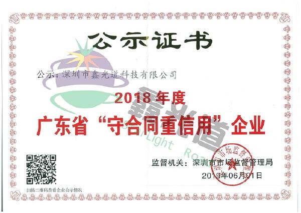 以此为契机,鑫光道将进一步发杨“守合同重信用”精神,不忘初心,提高企业信誉,通过自主研发、自主创新,提升产品服务质量,用实际行动践行诚信理念。