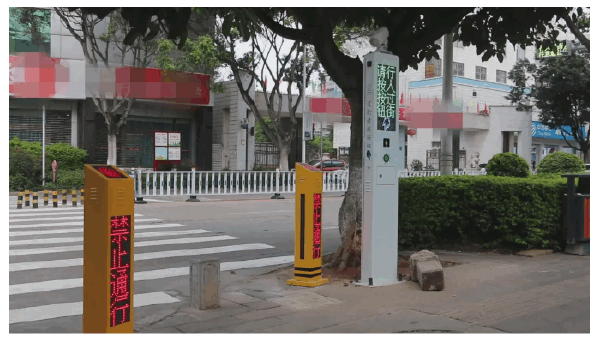 智能行人过街申请系统由行人过街申请系统主机、行人过街语音提示桩、机动车道诱导屏三部分组成。行人过街需要“申请”,行人、车辆按照信号灯、语音提示、诱导屏提示通过。