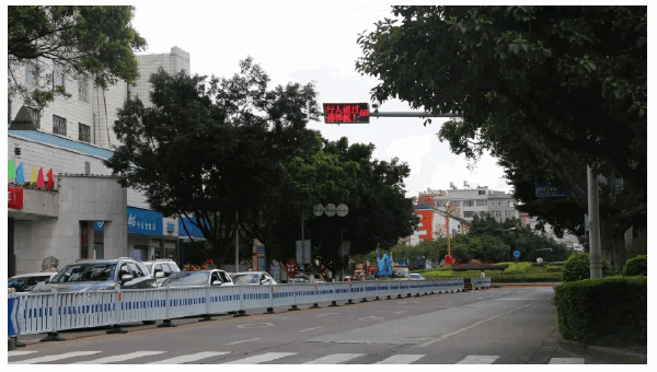 行人过街时间倒计时结束后,机动车道诱导屏显示“行人等待,请通行”绿颜色字样,同时马上开始倒计时,提示机动车恢复正常通行。