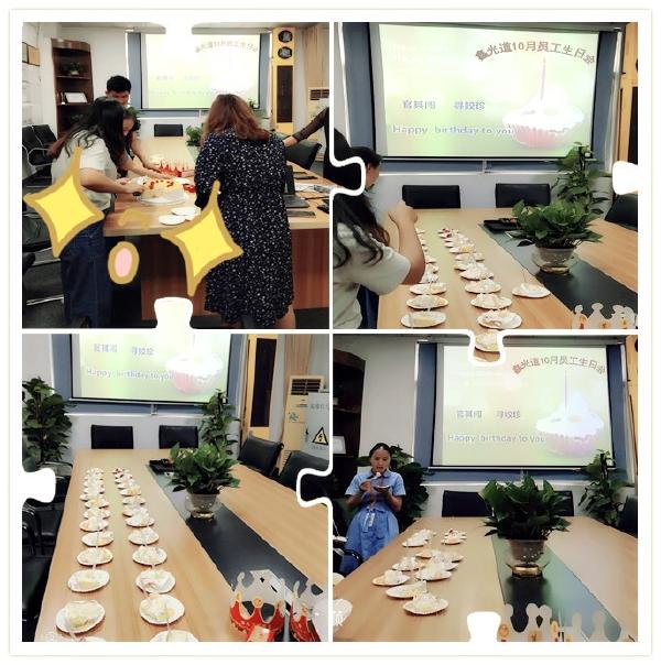 没有鲜花,却有掌声;没有美酒,却有祝福。2019年10月23日鑫光道公司为本月两位过生日的员工举办集体生日会,聚餐、唱生日歌、许愿、吹蜡烛,切蛋糕,吃长寿面,让广大员工在紧张繁忙的工作之余,可以感受到公司这个大家庭的温暖和同事的关爱,增强员工的归属感和集体凝聚力。