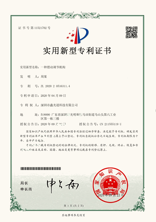 两项实用新型专利新鲜出炉,鑫光道一直注重产品小微创新及自身知识产权的保护,既维护了自身的权益,同时也为客户免除了侵权的后顾之忧,选择和鑫光道合作,绝对没错!