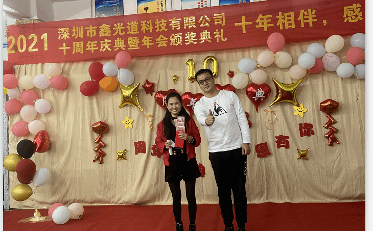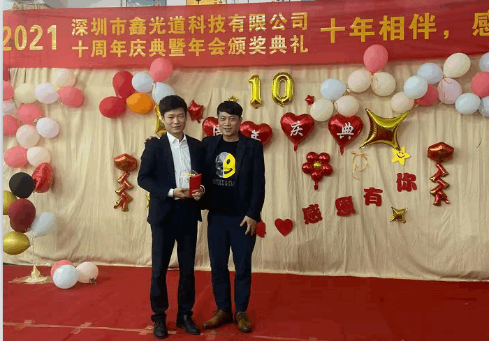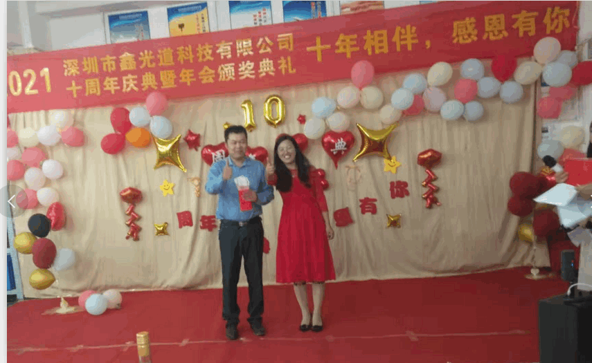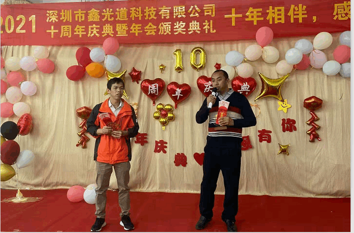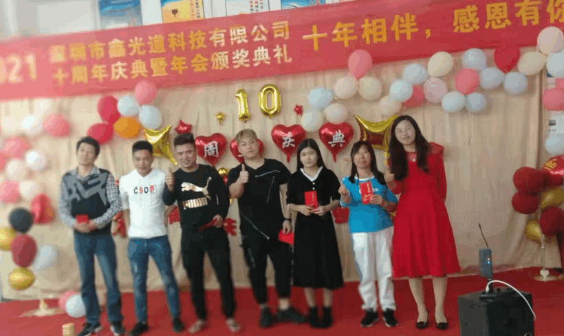 趁着公司十周岁生日,加上新年马上来临,公司以“十年相伴,感恩有你”为主题在本司内部举行了“鑫光道十周年庆典暨年会颁奖典礼”。公司全体员工齐聚一堂,共飨盛典。