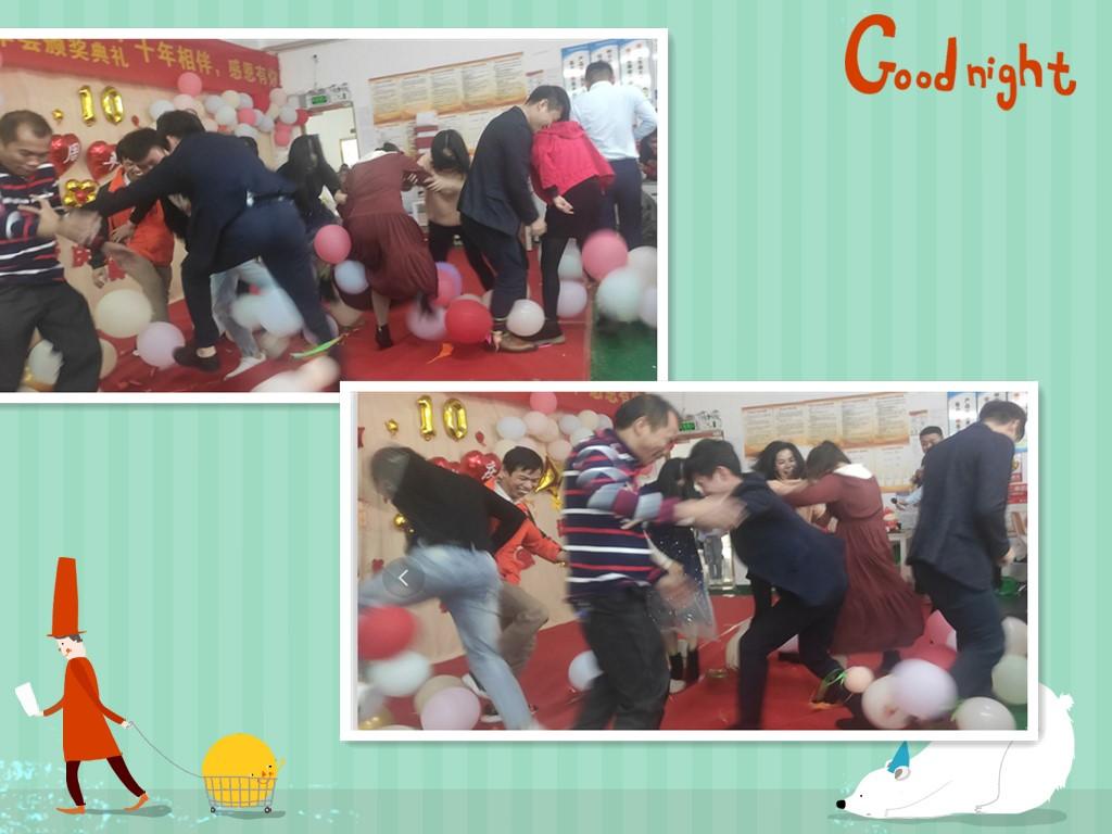 我们的庆典活动在和谐、温馨、欢乐的气氛中圆满结束。“过去的十年里,在公司领导班子的带领下,我们鑫光道人秉承着”务实、诚信、团结、创新“的精神,历经风风雨雨仍昂首阔步的迈向前方,并取得了傲人的成绩。在未来的日子里,只要我们坚定信心,务实诚信,团结创新,开拓进取,定能开创更加辉煌、灿烂的明天!