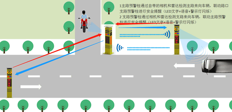 鑫光道道路预警由最初的弯道会车预警,延伸到现在的长坡路段预警,主干道与支路预警和城市道路特殊路段预警等特殊道路的应用,我们统称为道路预警。