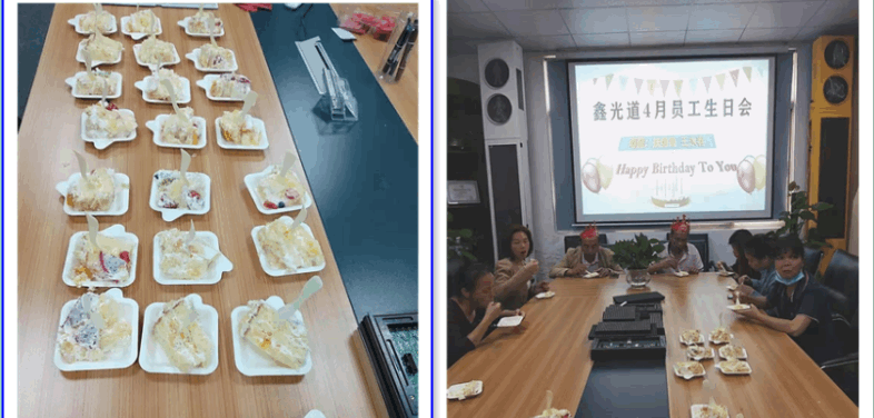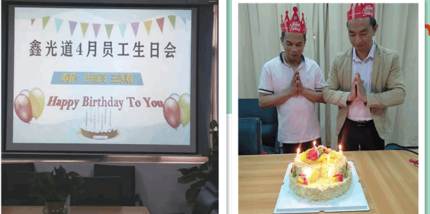 为弘扬公司企业文化,让员工感受到鑫光道大家庭的温暖,给员工长期以来辛勤工作给予肯定和感谢,表达公司对员工的点滴关怀,鑫光道科技有限公司在每月都为本月生日的员工举办生日聚餐活动。每月的寿星们同各部门人员聚齐在一起,大家其乐融融,幸福萦绕其中。