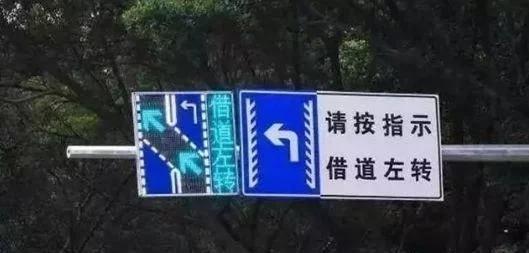 “借道左转”一般在临近路口中央护栏的位置,设立有明显的指示牌,并设有专门的信号灯,地面也有清晰的标线。