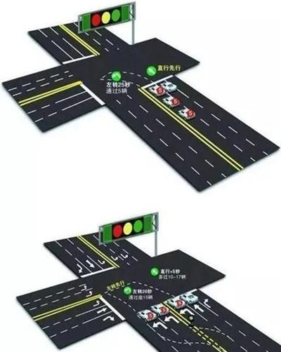 “借道左转”又称为“配道待行左转法”,目前在许多城市都在试行,其旨意改善路口交通压力,缓解交通拥堵,提高路口的车辆通行能力。“借道左转”主要是针对左转车流量大的路口,并不是所有的路口都能实施,路口必须要上下车道在三个车道以上。