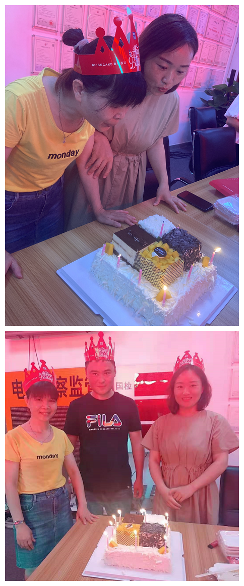 许愿过后,全体员工一起品尝蛋糕,水果,为本月的三位寿星们送上了最美好的祝福。