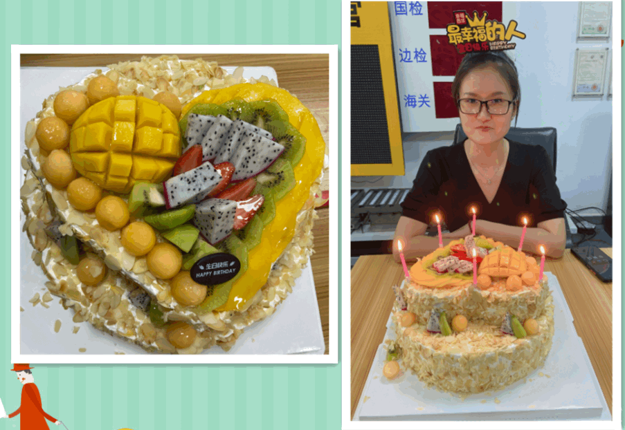 和同事们分享蛋糕的同时,