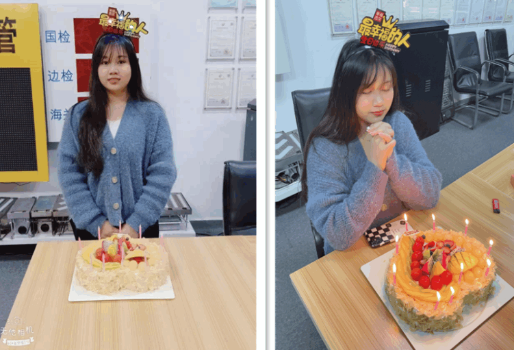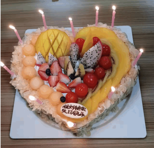 在生日会现场,公司为本月寿星准备了醇香四溢的大蛋糕和各种新鲜水果,全体员工为他们送上了生日祝福,寿星们也许下了美好的生日愿望,此刻,你就是最幸福的人。