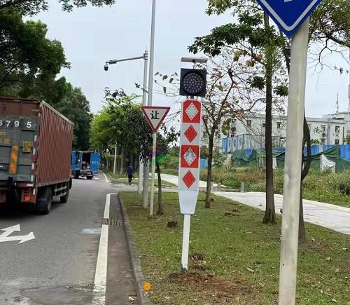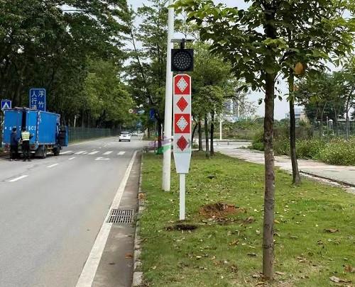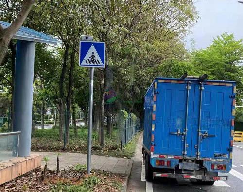 东莞虎门太阳能人行道口标和太阳能行人标示牌安装完毕