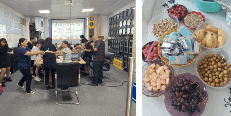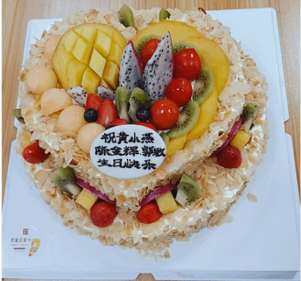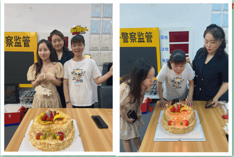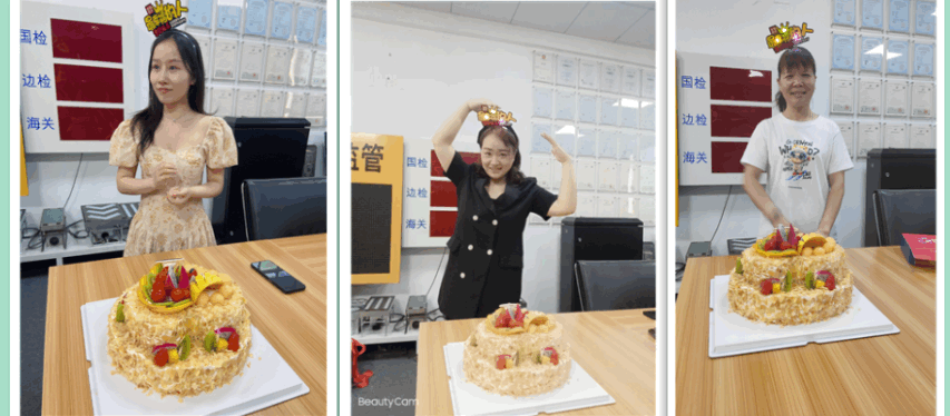 公司为本月寿星准备了醇香四溢的大蛋糕和各种新鲜水果、糕点等,全体员工为他们送上了生日祝福,寿星们也许下了美好的生日愿望,此刻,你们就是最幸福的人。