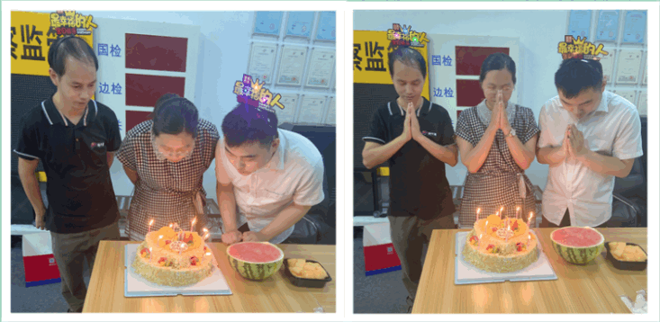 伴随着生日歌曲,公司为大家们准备了美味可口的生日蛋糕,以及新鲜的水果和零食,精心布置的现场,让生日的氛围更加浓郁。现场欢声笑语不断,气氛温馨而热烈。伴随着熟悉的生日歌声,寿星们在大家的簇拥下来到蛋糕前许下愿望,一张张脸庞在相互的祝福中绽放着愉悦的笑容……