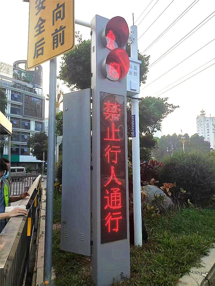 具有1600MM显示屏显示文字,文字可根据要求任意更改,带有语音提示功能,实现视觉听觉双重提醒过马路的行人。文字和语音都可用手机app软件直接更改。