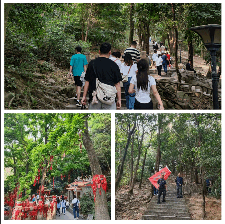当天天气晴朗,风和日丽,我们沿着蜿蜒的青石台阶步步前行,山里景色极美,绿树叠翠,密布山间。一路上,大家热情高涨、欢声笑语,一路畅谈,通过这个小小的登山活动既可以增加同事们之间的感情,又能让大家放松平日工作的紧张心情。