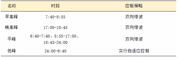 根据调查数据反映的实际交通流情况,把路段分成4个交通流特点不同的时段进行控制,分别是: