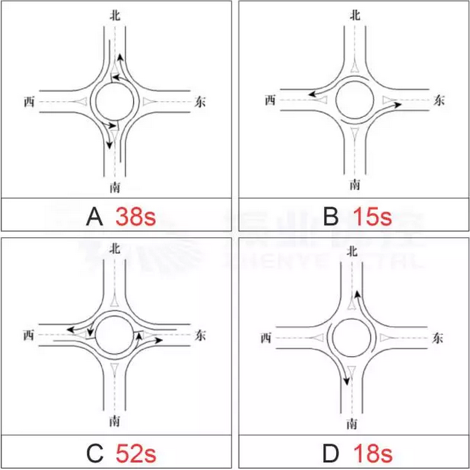 (4)环岛左转二次控制:直行车辆环岛一次放行,左转车辆须在环岛内停车等待一次实现二次控制通过路口,减少车流冲突。