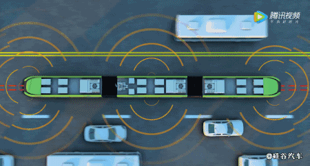 最高级的是,这个智能巴士是自动(无人)驾驶的。30多米长的车厢安全行驶,全靠中国自主研发的“虚拟轨道跟随控制”技术。
