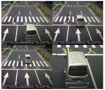 值得注意的是,取证要求图1与图2的拍摄时间间隔应不大于5s。主要是考虑到存在机动车已经停车让行而行人依然停止不前的情况。在这种情况下,机动车继续向前行驶不认定为违反人行横道让行规定行为。