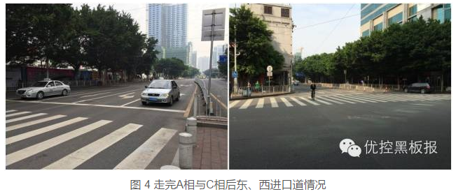 东西进口的直行车辆是在A相中同时放行的,当该路口的东西进口道出现潮汐现象时,不利于调控人员对该路口的调控。