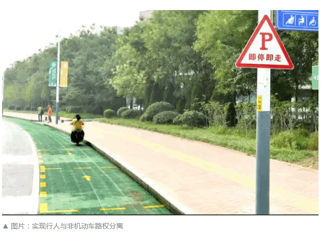 为进一步保障非机动车和行人通行安全和便利,变更设计理念,将原来的慢行一体模式调整为行人、非机动车落差模式,实现行人与非机动车路权分离。