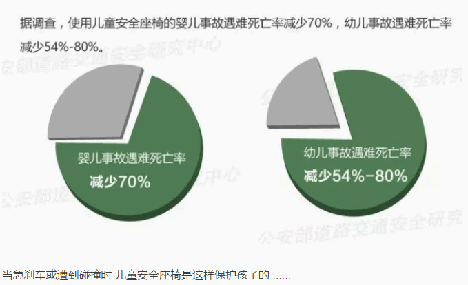 儿童安全座椅是一种专为不同体重(或年龄段)的孩子设计,能够有效提高孩子乘车安全的座椅。据调查显示,使用儿童安全座椅的婴儿事故死亡率可以减少70%,幼儿事故死亡率可以减少54%-80%。